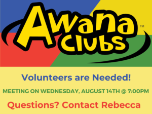 17 Pleasant St Marblehead, MA 01945 Fellowship Hall August 14, 2024 7:00 pm Awana Volunteer MeetingQuestions? Contact Rebecca Coloma