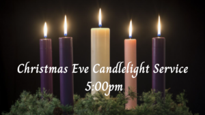 Please join us for our Christmas Eve candlelight service at 5:00pm for a gathered worship service to celebrate the birth of our Savior. It will be family friendly and will include carols, readings, a message, and candles.