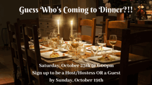 to be a mystery Guest for dinner at a GCC member’s house on Saturday, October 25th @ 6:00pm.