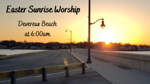 What a beautiful sight and way to start worshipping our Lord on His Resurrection Day! Please join us at 6:00am at Devereux Beach on Easter Sunday. You may park your cars in the Devereux Beach lot.